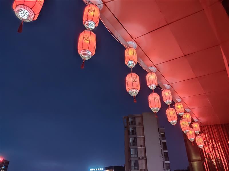 对于近景,手持夜景模式更进一步,在提升画面整体亮度的同时压制过曝迹象,从而获得亮度适中且具美感的照片,画面主体(灯笼)被还原的很真实。