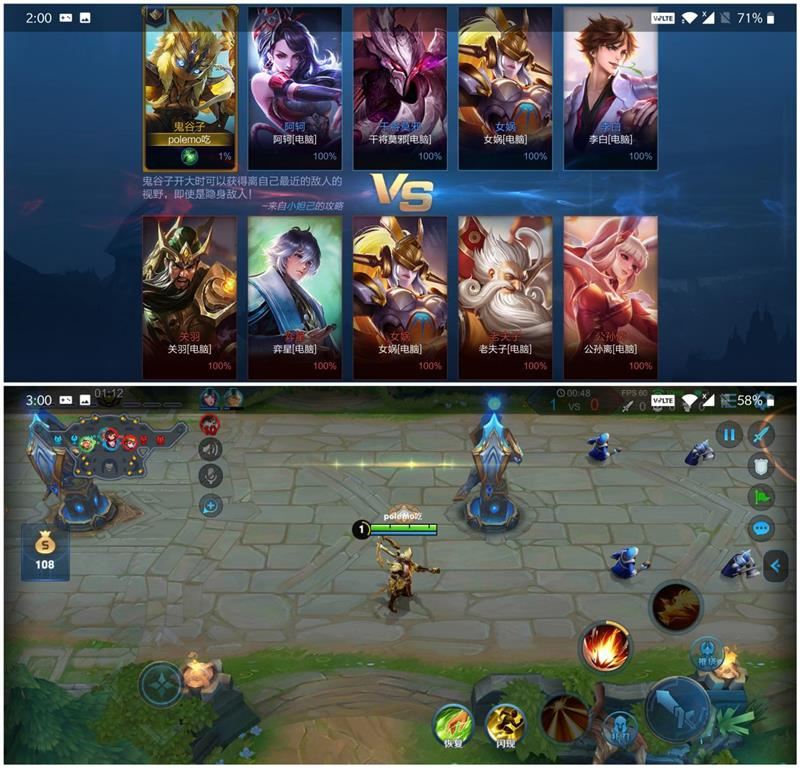 时间2:00-3:00,电量71%-58%。一个小时《王者荣耀》耗电量为14%,表现依然优秀。