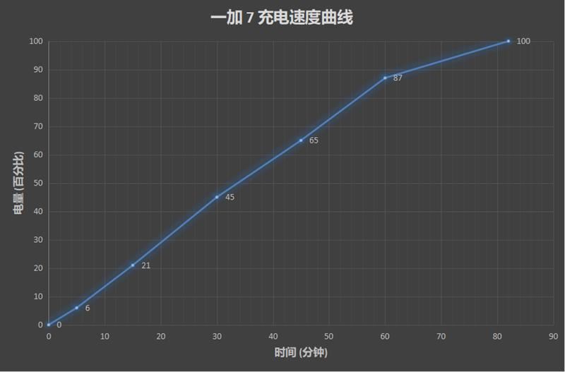 因为电池容量同步减少了300mAh,所以充电速度没有明显下降,在60分钟电量达到87%,30分钟也有45%,日常随充随用完全没有问题。