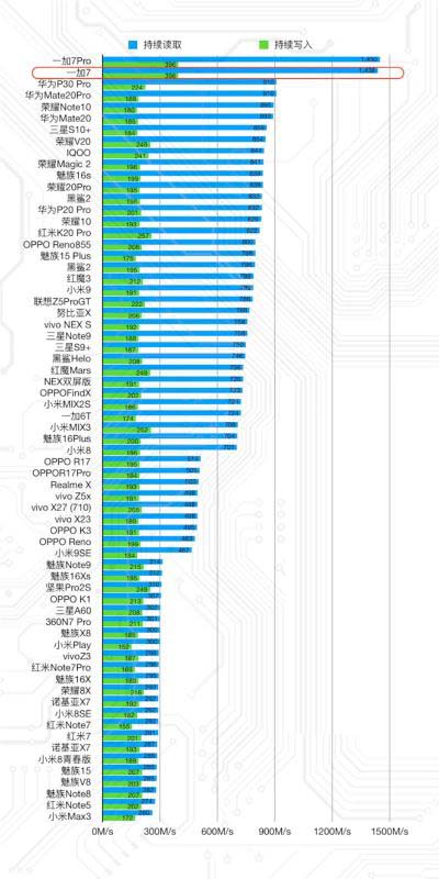 图中能看到一加7Pro与一加7在读写速度上一骑绝尘,这就是“我有你没有”的优势。依靠UFS3.0闪存的国内首发加持一加7得以在同质化严重的手机中脱颖而出。