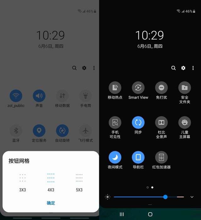 在系统中还加入了很多人性化设计,比如下拉栏还可以自定义按钮的排列,极大满足不同人群的使用需求。夜间模式的加入,可以在夜间使用手机时开启深色背景,长时间夜间使用更加舒适。