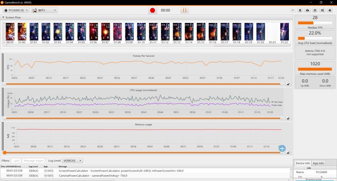 在GameBench中帧率数据显示也是如此,10分钟的游戏平均帧率都稳定在30帧,帧率曲线也非常稳定,没有较大浮动。