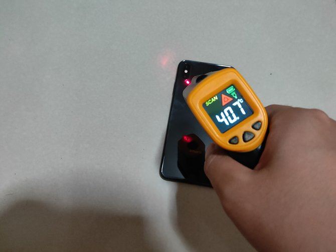 在经过10分钟游戏后,用手触摸OPPO K3背面也没有明显的发热感,这应该归功于OPPO优秀的软件优化和散热设计,让热量不积累,时刻保持清凉。当我测量OPPO K3在游戏过后的温度时发现,最高温度处于K3背面相机位置,达到38度。而游戏之前该位置的温度是30度。