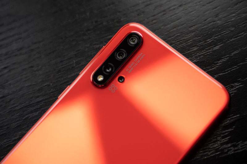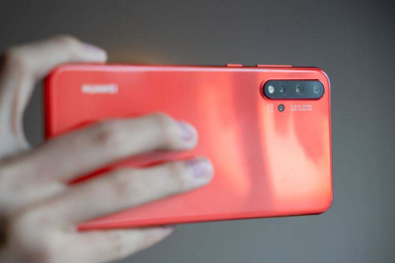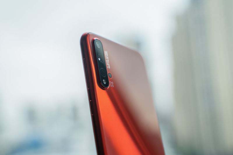 近年来,相机已经成为了华为手机的基因,nova5 也采用了「卡片式相机」的设计。后置的四颗摄像头被放置在左上角,旁边还有「AI QUAD CAMERA」、「48MP 1:1.8/26 ASPH」,这意味着主摄是4800万像素,等效26mm,具备f/1.8光圈以及非球面镜片。这样简单的设计让nova5 Pro看起来就像专业的摄影器材。