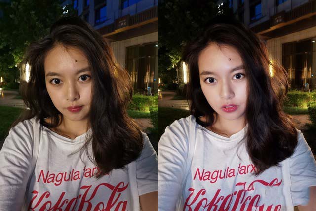 普通模式(左)和人像超级夜景(右)