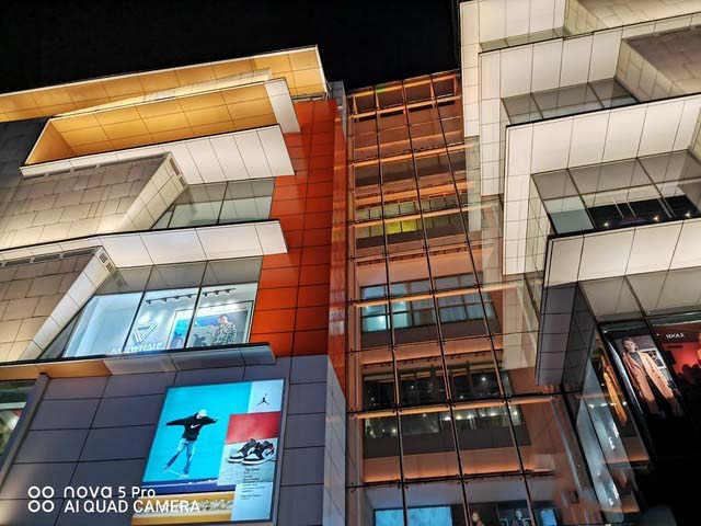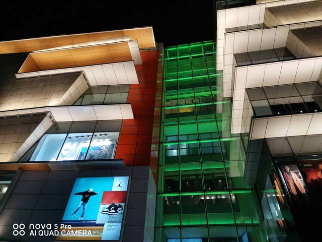 通过实拍样张可以看到,华为nova5 Pro的超级夜景拍摄模式,通过智能测光、降噪和图像增强技术,低曝光获得亮处细节、高曝光获得暗处细节,不仅高光得到压制,暗部细节也得以凸显,进一步增强清晰度、画面层次感、暗部色彩饱和度。