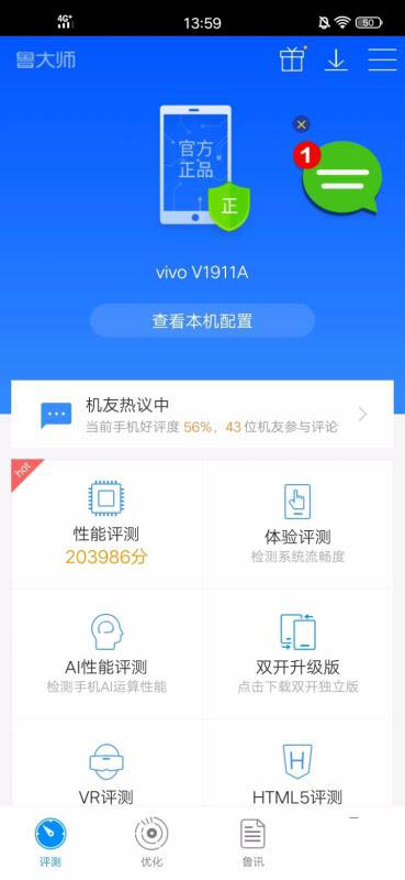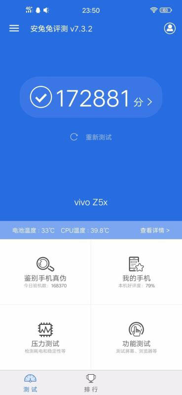 安兔兔跑分172881分,鲁大师跑分203986分,这个成绩在千元阵容中还算可以,跟高端机那肯定是被吊打的。