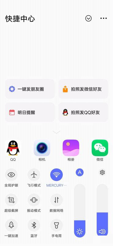 快捷中心把多步操作的功能用一个快捷方式实现。例如一键发朋友圈、拍照发微信给好友、明日提醒等,除此外还有很多快捷方式等你发掘。