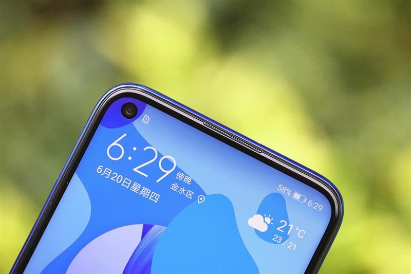 华为nova 5i采用的6.4英寸“极点全面屏”使用了屏下镜头技术,将镜头隐藏于液晶屏之下,实现完整四边无异形的屏幕形状,避免刘海设计带来的遮挡,实现了84.2%的屏占比。