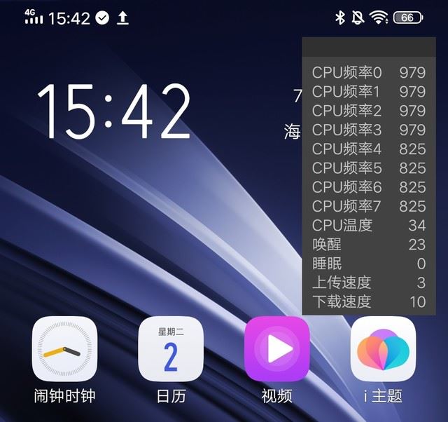 首先将iQOO Neo静置在桌面一段时间,使用监控软件看看4颗A75核心和4颗A55核心的开启情况。