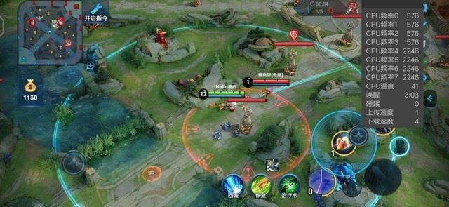 播放在线视频时,骁龙845也并没有消耗太多的能量去应对,频率和桌面静止的差不多。下面开始测试玩《王者荣耀》时的表现。