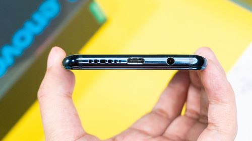 联想Z6中框采用和背盖色彩一致的亮面六系铝材,本就只有7.97mm厚度的机身在弧线收边的加持下更显纤薄,屏幕朝向用户时,中框左下角为与或SIM卡槽,右侧上部为音量键与电源键,按键反馈比较干脆。中框底部从左至右依次排布3.5mm音频接口、Type-C接口、扬声器开孔,保留耳机孔这个设计相信还是很讨人喜欢的。