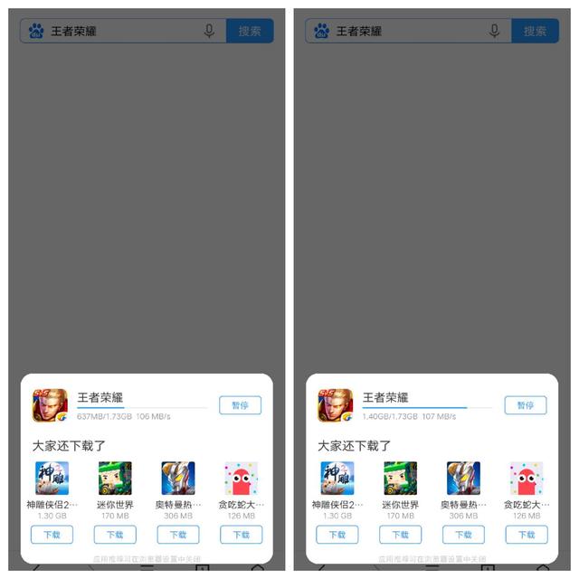 然后在实际使用的下载速度表现上,《王者荣耀》1.73GB大小的安装包耗时大概16秒左右,平均速度保持在100MB/s以上,使用体验非常出色。这个网速基本上已经达到可以和家庭中的千兆宽带相媲美的程度。如果说4G网速相当于高速行驶的汽车,那么5G的网速体验就相当于起飞中正在加速的飞机了,持续且具有爆发性的速度可以让用户保持明显的网速"推背感"。