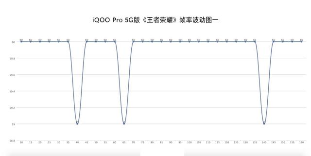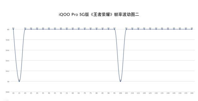 游戏内的设置均为特效全开,调整至可以设置的最高选项,以求给iQOO Pro 5G版带来最大的运行压力,然后使用手机进行了1小时12分钟左右的连续游戏测试。测试期间总共进行了3把游戏,每把游戏在体验上都非常流畅,为了更加直观的让各位领略到这种流畅感,我对游戏进行了帧率的实时记录,并制成了以下两幅曲线图(帧率记录为随机选择了测试期间两段游戏过程,每隔5秒钟进行一次帧率记录):