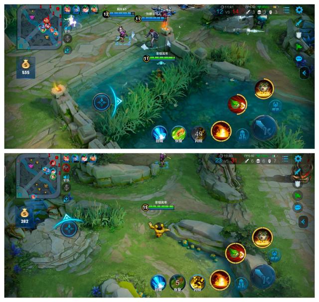 并且在游戏开始时,英雄开始带兵线走出高低时飞起的鸽子、英雄进草丛时草丛枝叶的颤动、野区小怪和河道水流的特效等都表现的极为细腻流畅,体验上乘。性能方面可以说拥有近乎完美的呈现和体验。