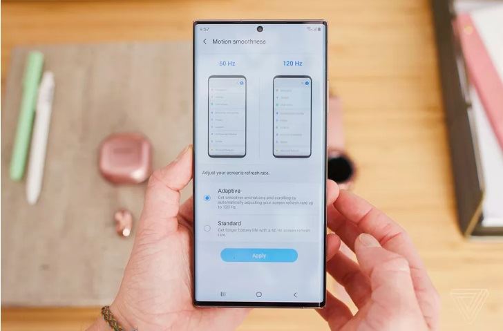 三星Galaxy Note 20 Ultra手机搭载6.9英寸QHD+ Super AMOLED显示屏,支持120Hz自适应刷新率,3088×1440分辨率、像素密度达到496ppi,以及提供HDR10+支持。中间打孔屏幕配置1000万像素自拍摄像头。