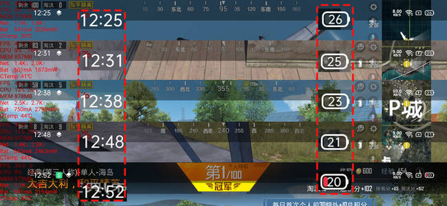 从上飞机开始记录,一直到游戏结束,共耗时27分钟,手机电量从26%降至20%,共掉电6%,粗暴一点直接折算的话,1%电量游戏时间约为4.5分钟,满电可支持同等强度游戏约7小时以上,游戏续航非常靠谱。