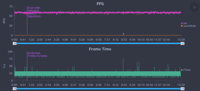 至于同样热门的《和平精英》,除了分辨率选项无法开启「超高」以外,其余选项全部开至最高,游戏过程帧率保持稳定60FPS,最低帧率也在52.9FPS以上,全程流畅,操作手感良好。