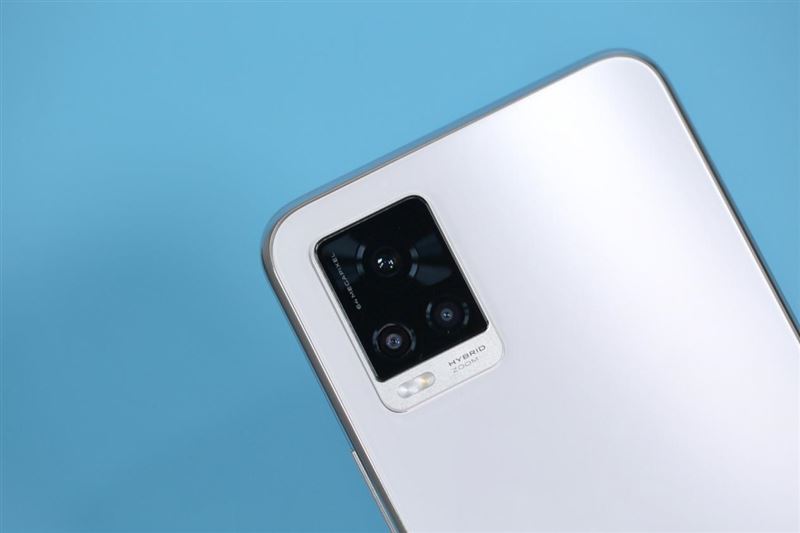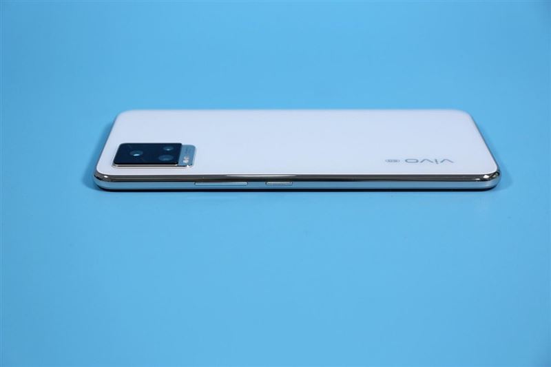 vivo S系列向来注重背部外观的设计创新,到了这一代的vivo S7在配色方面早已脱离炫目光影的窠臼。展现在我们眼前的是月光白配色。其采用珍珠白光感镀膜,经由AG磨砂工艺加工,机身上形成了强烈的光影明暗对比。