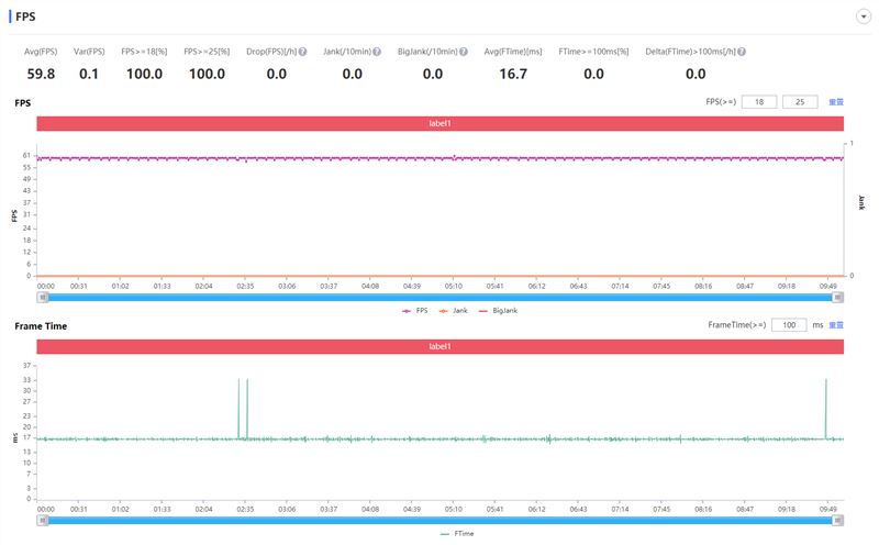 可以看到,两款游戏的平均帧率表现都可以用稳定满帧来形容。且全程未看到卡顿,在骁龙765G的加持之下玩这些游戏毫无问题。