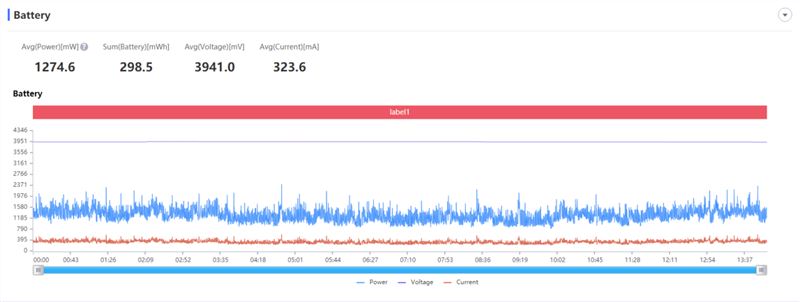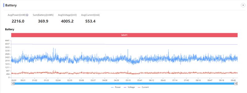 70%亮度、30%音量下,使用哔哩哔哩播放1080P在线视频,我们监测到的放电信息如图。由此可以估计,vivo S7在测试条件下持续播放1080P在线视频的续航在12小时左右。
