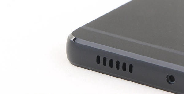 机身底部和顶部都进行了NMT纳米级注塑,其实注塑工艺的好坏很容易分辨,那就是通过触摸机身背后的注塑条,越是注塑条和金属过度的平滑,说明工艺更好。目前包括华为等多家国内厂商工艺方面都能够比肩国际厂商。并且我们可以看到通过注塑华为P8也为耳机孔,USB数据线接口进行了绝缘。