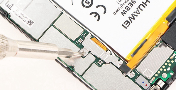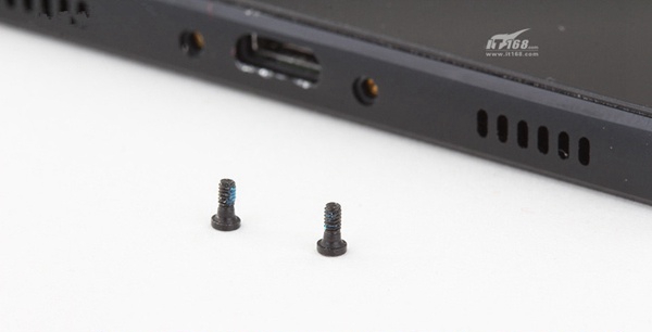 此次华为P8采用了一体式金属机身设计,所以开启方式和历代iphone差不太多。底部采用了两颗6角形特殊螺丝,采用特殊螺丝拆解带来了难度,当然也对产品上市后期一些补发奸商翻新带来了难度。这两颗螺丝也很容易在拆解过程中留下划痕,很容易通过这两颗螺丝鉴别手机是否为翻新。