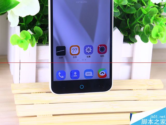 中兴小鲜2整体采用了非常圆润的造型设计,鲜有棱角,所以握持感很舒适。笔者手中拿到的是一款白色的机型,其侧面边框和后盖均为白色,正面为全黑屏幕,引人注意的是底部的蓝色圆环Home键,当然其左右两侧也分别由功能键和应用菜单键隐藏其中,触控时才会点亮为蓝色的小圆点,感觉还不错。