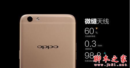 背面是R9s区别于R9的地方。OPPO R9s采用了微缝天线设计,将目前绝大多数Android手机上1.5-2mm宽的天线编程3条宽度仅为0.3mm的细线,使得天线总面积降低60%,进一步提高了手机的金属占比。