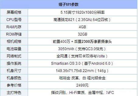 从参数来看,锤子M1只有一个版本,这里需要注意的是锤子M1L拥有三个版本。