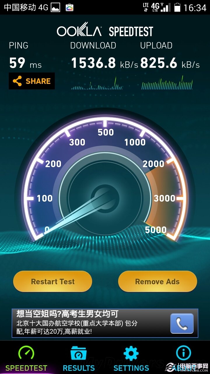 4G速率方面,下载速度可达1.5MB/s,上传速度也达到了800KB/s,支持移动4G是没有问题的