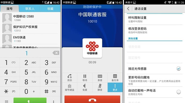 拨号界面支持黄页检索,通话时录音、备忘录等功能也一应俱全,而且支持关闭光传感器的接近操作