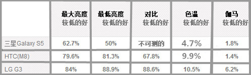 亮度方面,LG G3大约为450尼特。与同类的旗舰机相比,这种表现还算令人满意。虽然在极其极端的诸如阳光直射下难以看清显示内容,但在其他的情况下,阅读屏幕上的信息还无问题。此外,该机的最低亮度大约是9尼特,数值稍微有些高,虽然不会让你的眼睛在黑暗中盯着屏幕无法直视,但它确实不算是最舒适的体验。