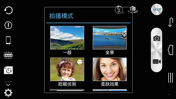 富可视M512智能手机搭载了前置200万像素摄像头和后置800万像素摄像头,其中后置摄像头采用了索尼的Exmor R CMOS传感器,在同价位产品当中并不多见。和传统影像传感器相比,Exmor R CMOS传感器的灵敏度有所提升,也就是说它对光线的利用率更高,同时,Exmor R CMOS传感器的噪点控制能力较为出色,即使是在全黑环境下,该传感器的噪声抑制水平也比传统影像传感器要好,下图看到的是富可视M512拍照界面。