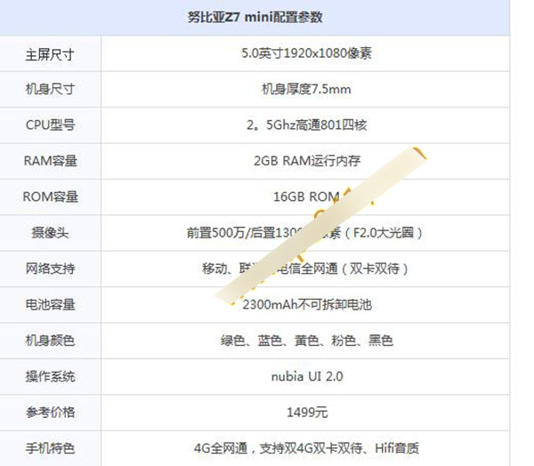 下面一起先睹为快,我们先来看看nubia Z7 mini参数配置,如下: