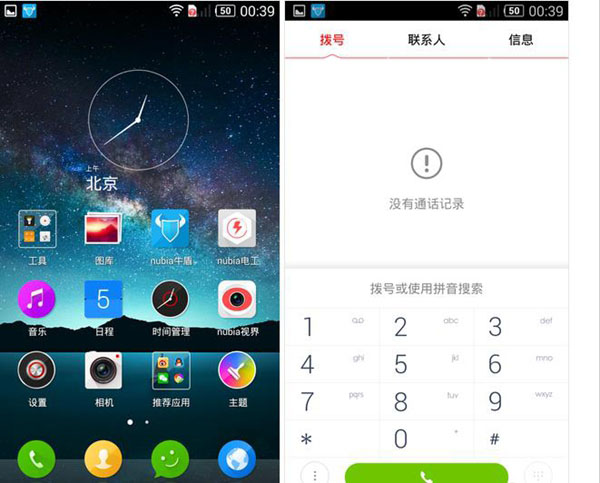 系统方面,大家应该都知道努比亚旗下的智能手机都是采用的是nubia UI操作界面,之前的nubia X6运行的nubia UI 2.0系统,而这次的nubia Z7 mini运行的是基于最新的安卓4.4.2开发的nubia UI 2.5系统。但是,相比配置和硬件来看,nubia Z7 mini系统方面变化的并不多,只是在之前的系统版本上,进行了一些细节改进。下来就一起来看看这其中的变化吧。