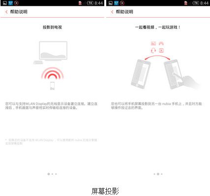 除此之外,nubia UI 2.5还提供了针对大屏利用效率的分屏功能和诸如屏幕投影、红外遥控器、蓝牙寻找手机、智能体感和手势操作等有可能使用到的便捷功能,增加了系统的可用性、可玩性。