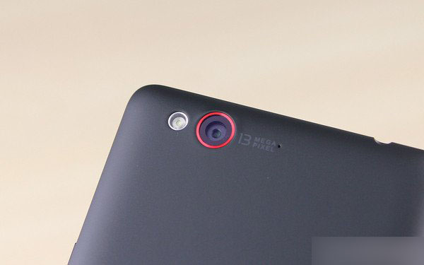 背面为磨砂材质,左上角配备闪光灯和1300万像素摄像头,并用红色圈出,十分显眼。