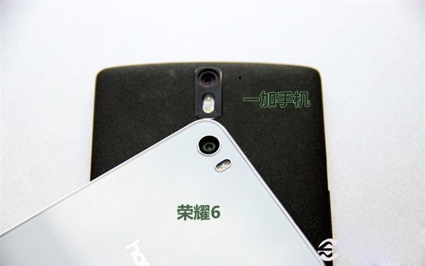 后置摄像头方面,荣耀6的摄像头是在机身背部的左上角,而一加手机摄像头设计在其背部正上方,如图所示