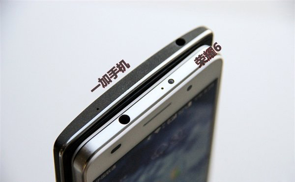 机型正上方,荣耀6和一加手机前置摄像头,听筒,距离感应器对比。如图所示