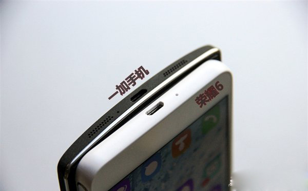 底部方面,荣耀6机身底部只有数据接口和话筒,而一加手机多了一个扬声器;如图所示