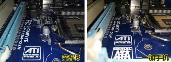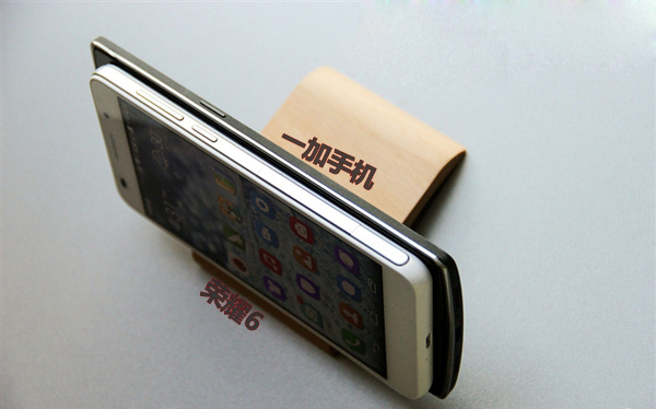 机身厚度,荣耀6厚度为7.5mm,而一加手机最厚处为8.9mm,2者厚度区别不大,如图所示
