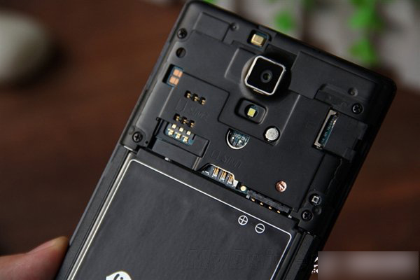 拆下后壳,双光灯同样设计在后壳上;电池容量2000mAh,支持更换这点比较赞。需要注意的是,插入SIM卡前必须拆掉电池,多多少少有些不便。