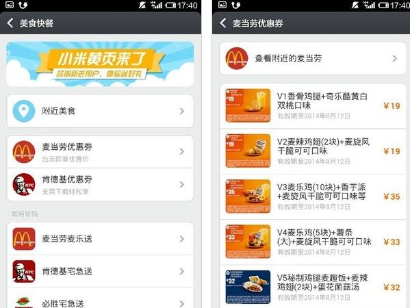 小米发现很多服务APP,例如58、顺丰、银行等,想用时发现没装APP,装了之后又发现用不了几次。因此开发了小米黄页这个功能,整合各种常用生活服务,不需安装APP,想用就用,支持手机充值、快递查询、订票、代驾、挂号等服务。