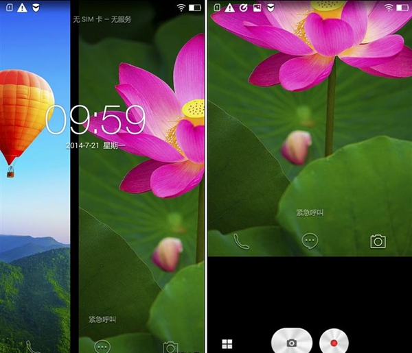 从截图我们看到,锁屏界面最下端有“电话”“短信”“相机”三个快捷入口,手指从对应图标上滑即可直接进入界面进行对应的操作。如果没有按住图标上滑则为正常解锁,是不是很实用额。然而,值得小编一提的是,锁屏界面支持左右滑动更换锁屏壁纸;而且通过设置,可以在点亮但还未解锁时,实现双击熄屏功能,便于快速查看时间和有无消息。