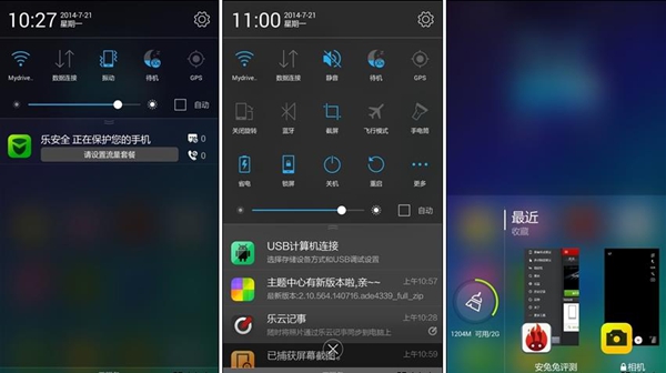 VIBE 2.0系统的通知栏采用类似Color OS的可折叠设计,而且亮度调节也单独成行,设置起来非常方便。