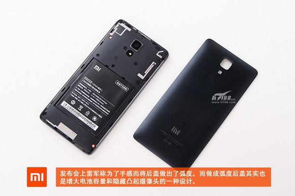 小米4采用可拆卸后盖设计,不过并不可拆卸电池。在发布会上,雷军称小米4后盖采用了弧度设计,这样设计主要是为了增大电池容量和隐藏凸起摄像头的一种优化设计。