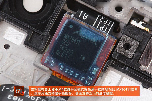 雷军发布会称小米4支持手套模式就是源于这颗ATMEL MXT641T芯片,该芯片还支持湿手操控等,甚至还支持2cm的悬浮触控。