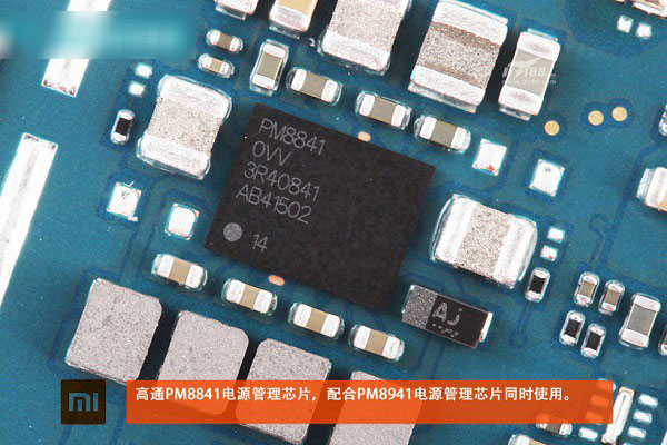 图为高通PM8841电源管理芯片特写,配合PM8941电源管理芯片同时使用。
