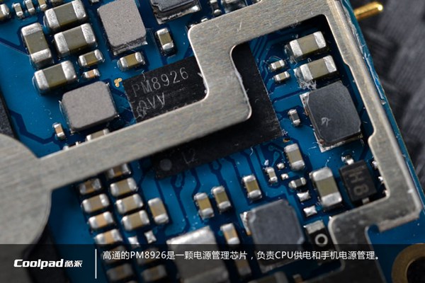 图为酷派双棒T1内置的高通PM8926电源管理芯片,负责CPU供电和手机电源管理。